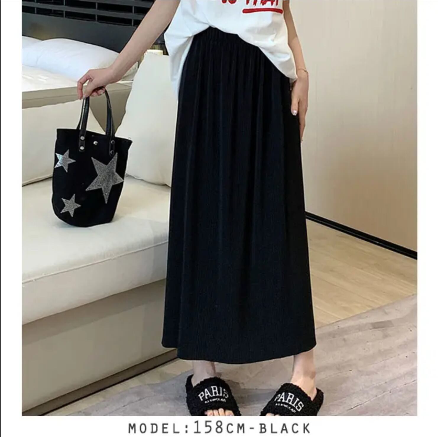 ウエストゴム ウエスト総ゴム ボトムス ロング ストレッチ 縦 Iライン ストレート 透け感 細リブ 切りっぱなし カジュアル リラックス デイリー 韓国風